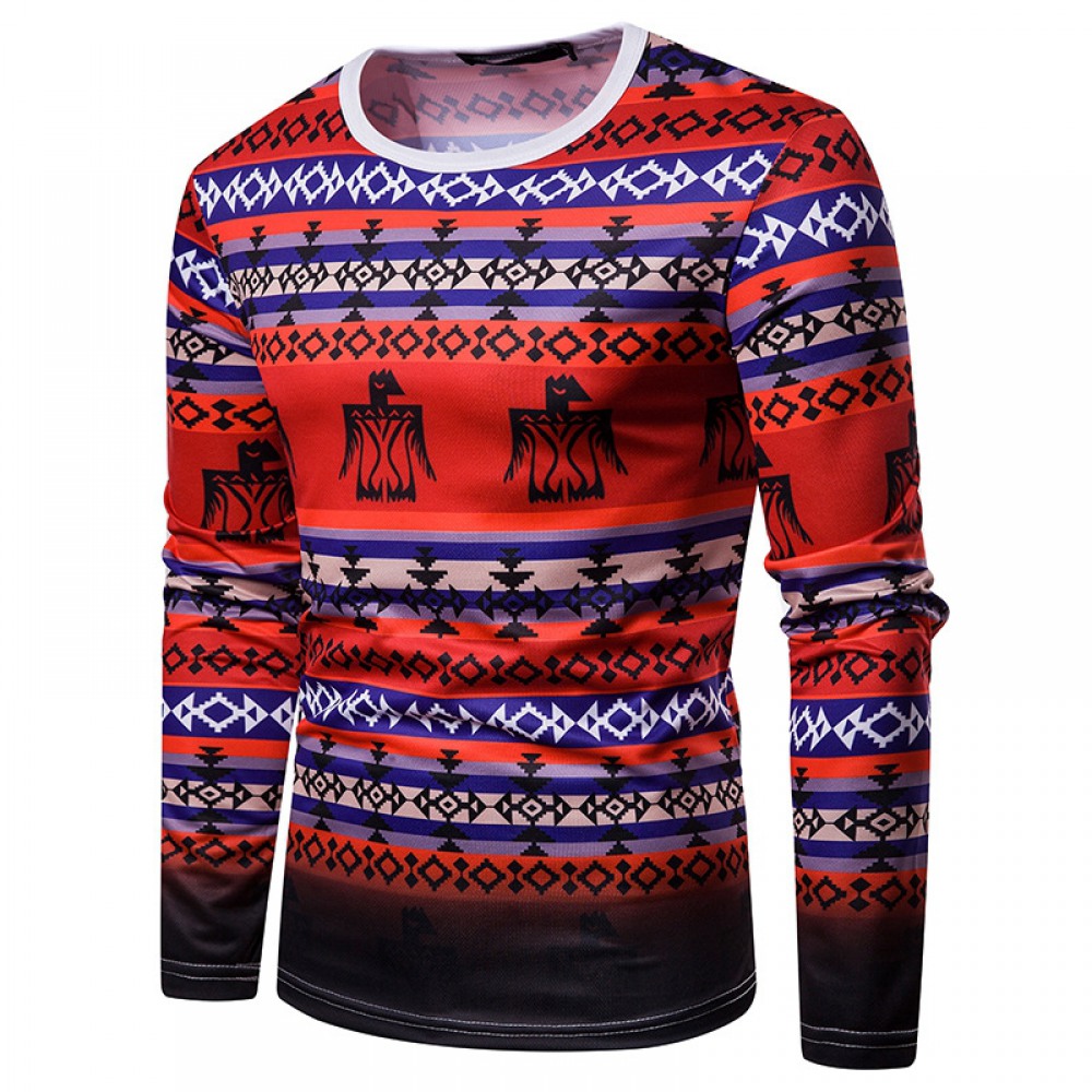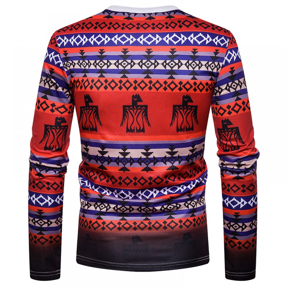 Men's 3D Digital Printing Color Men's Long-Sleeved T-Shirt
