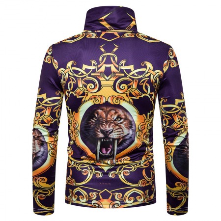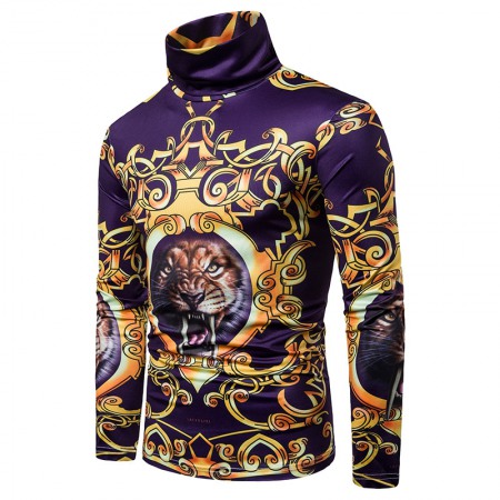 New Men's Large Size 3D Classical Pattern Printing High Neck Long Sleeve T-Shirt Bottoming Shirt