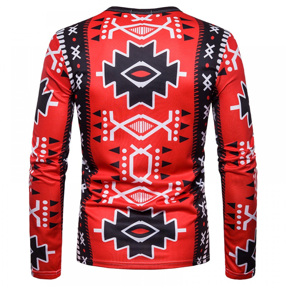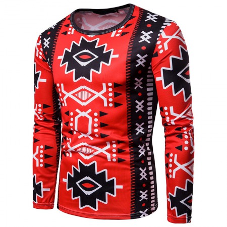 Men's Personality Clan Style Print Round Neck Long Sleeve T-Shirt