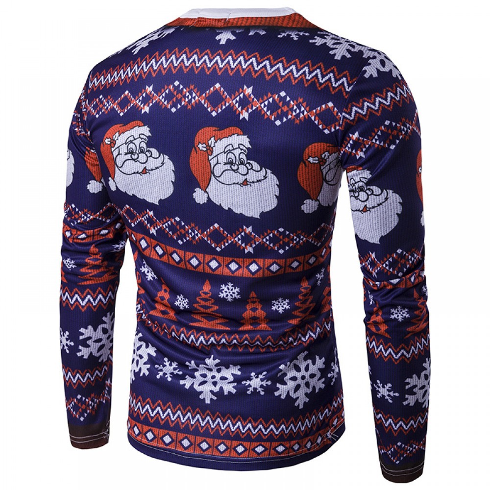 New Style Men's Fashion 3D Santa Claus Round Neck Long Sleeve Slim Printed T-Shirt