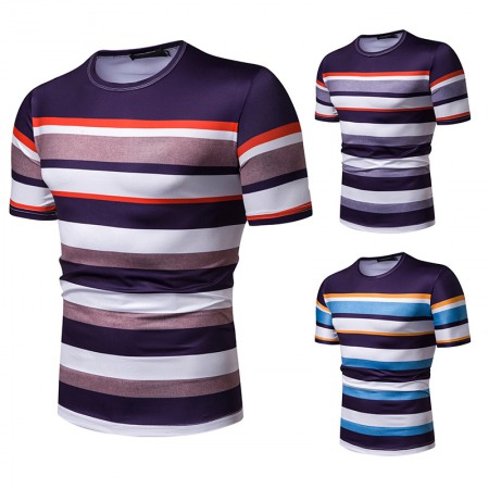 New Summer Men's Short-Sleeved T-Shirt Mens Contrast Striped Slim Casual T-Shirt