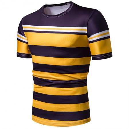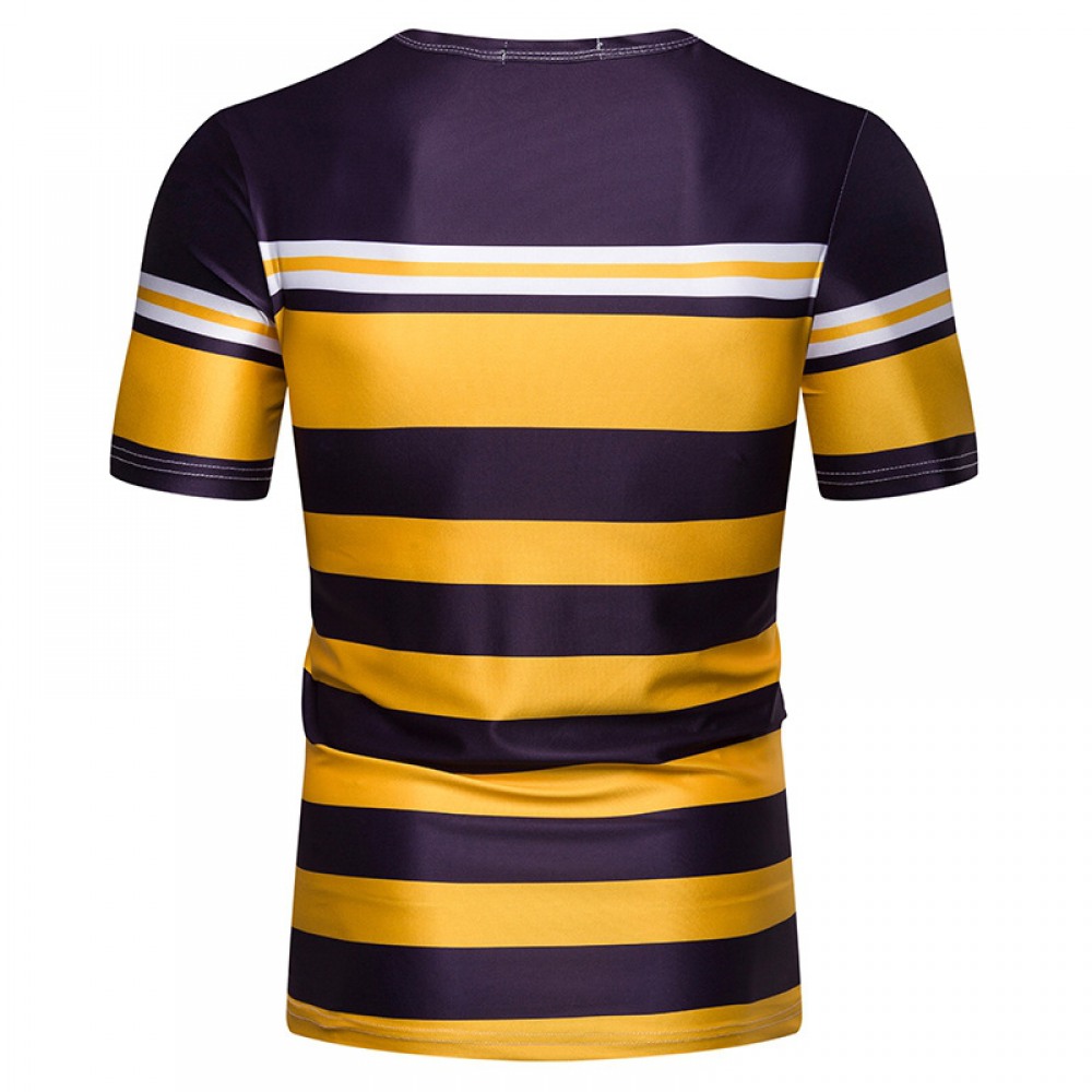 New Summer Men's Short-Sleeved T-Shirt Men's Contrast Striped Slim Casual T-Shirt