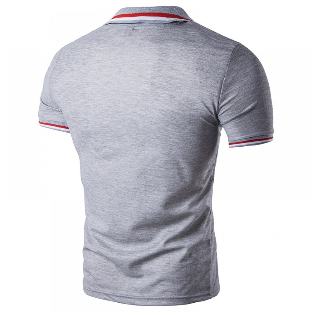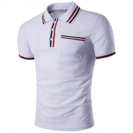 Summer New Men's Color Strip Stitching Personality Plus Size Lapel Short-Sleeved T-Shirt